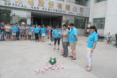经过激烈的比赛,透镜机关的王丽等四人摘取了“足式保龄球”第一名的桂冠,技术中心的初红梅和棱镜镀膜的许常宇等八人分别获得第二第三名,棱镜镀膜的刘强等四人摘取了“跳方格”第一名的桂冠,总经办李荣果和技术中心刘维娜等八人分别获得第二第三名。